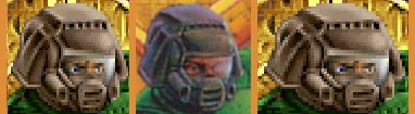 Relación de aspecto corregido y sin corregir de la cara del protagonista en la pantalla de título de Doom, en comparación con la versión de la caja, lo que sugiere fuertemente que los gráficos de Doom en el juego han sido diseñados específicamente para alto de píxeles del modo de pantalla 320x200.