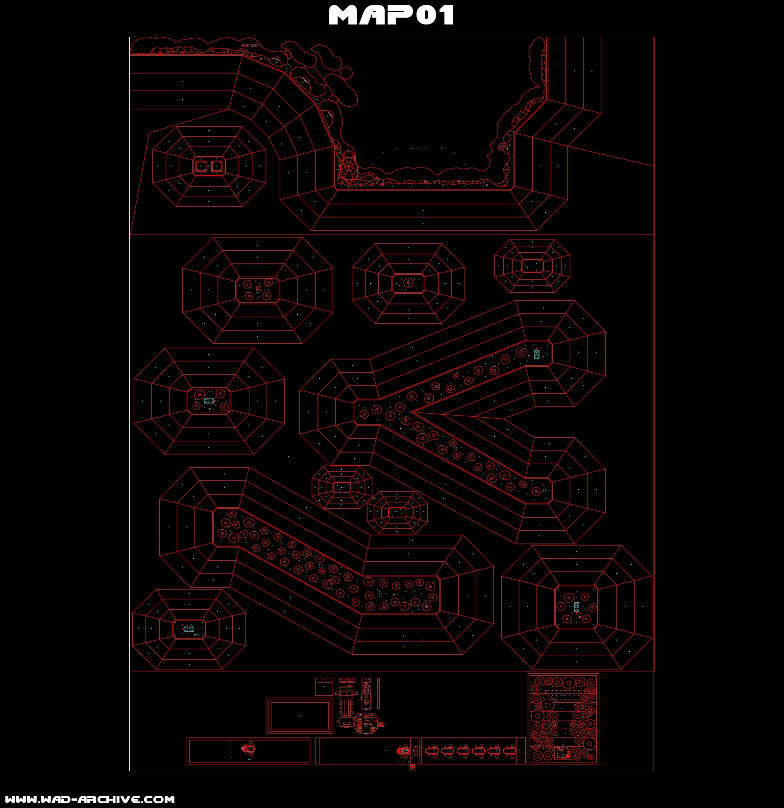 Empezaras con la introducción que puede ser salteada si en la consola escribes "puke 222", tras eso estarás la isla al sur del mapa, tendrás un diablillo enfrente, si eres rápido intenta matarlo con los puños y así con todos los demás en la misma isla, o de lo contrario ve al otro extremo de la isla desde el lugar en donde empiezas y encontraras una llave azul, ahora ve a la isla que esta en la zona inferior suroeste y encontraras una pistola y un monitor de invulnerabilidad, intenta usar el monitor para matar demonios con los puños y ahorrar balas, enfrente de la isla del comienzo hay dos islas, una de ellas tiene un monitor de armadura y la otra isla uno de anillos, en la segunda gran isla que esta después de esas 2 islas hay una llave verde que te ayudara a abrir un contenedor con una ametralladora en una isla que esta en la sureste inferior, sigue en la segunda gran isla y encontraras un contenedor naranja que la llave la encontraras en el primer secreto, delante del contenedor naranja habrá una isla con un monitor de anillos, a la izquierda de esta misma isla habrá una isla con un árbol que tendrá una llave rosa que te ayudara a abrir un contenedor con una escopeta en la isla abajo de la isla que tienes a la izquierda de la que ya estas, antes de ir a la isla que tiene el contenedor rosa explora la isla que tienes a tu izquierda para algunos objetos, delante tendrás una isla pequeña pero no vayas todavía porque es la isla del jefe, ahora ve a la tercer gran isla, que tendrá varias cosas interesantes así que explora esta también, también están los 3 secretos, cuando hayas matado a todos ve a la isla del jefe, y prepárate a que saldrán varios Cacodemonios, si quieres ahorrar munición hay un berserk en el medio de la isla, cuando hayas derrotado a los Cacodemonios y recibas tus puntos ve a la tercer gran isla y métete por uno de los agujeros de la isla para entrar al acto 2.