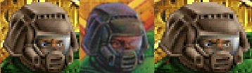 Aspect ratio corrected and uncorrected versions of the Doomguy's face on the Doom title screen, compared with the version from the box art, strongly suggesting that Doom's in-game graphics were designed specifically for the tall pixels of the 320x200 screen mode.