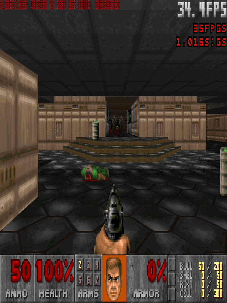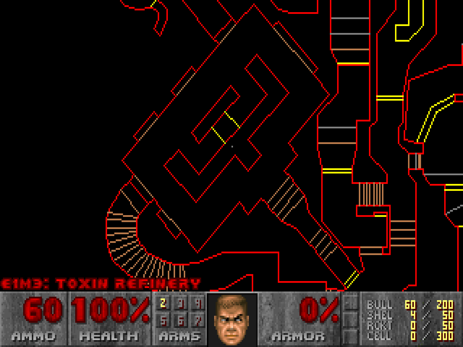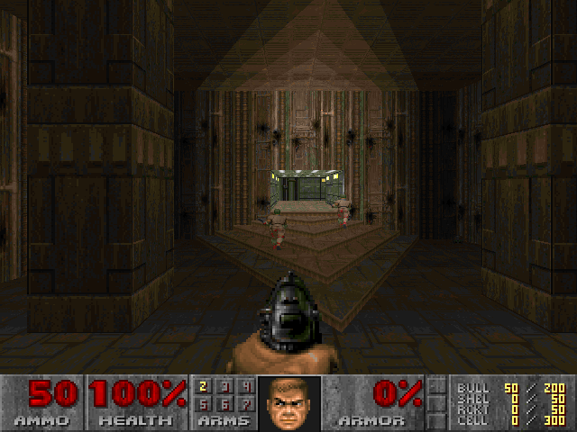 The start of MAP01 as it appears in Doom 95. Compare with how this appears in the original Doom.