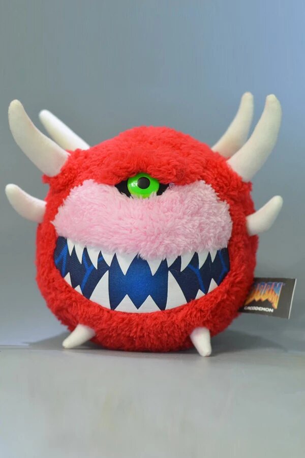 On September 5th, 2013, Gaming Heads released both a Cacodemon and Pain Elemental for purchase on the Bethesda Store.[1] In the final video of John Romero's playthrough of the first episode of Doom with JP LeBreton on "Devs Play," these plushies are visible on his mantle.[2] Gaming Heads went on to release the Doomguy ("Doom Space Marine") as the third available plush.[3]