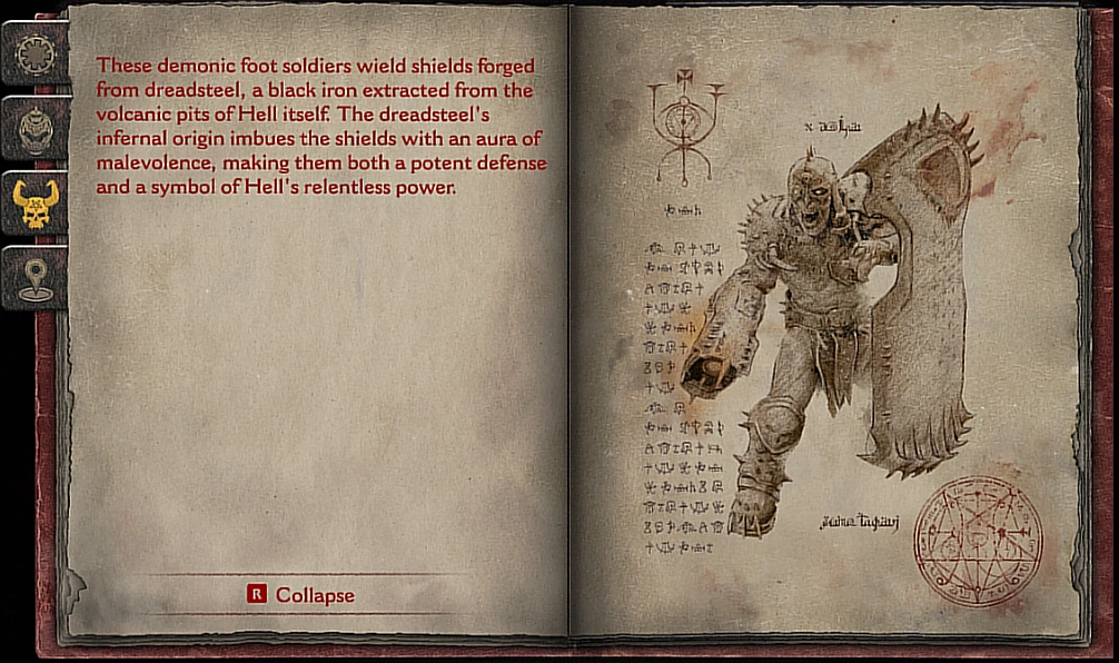These demonic foot soldiers wield shields forged from dreadsteel, a black iron extracted from the volcanic pits of hell itself. The dreadsteel's infernal origin imbues the shields with an aura of malevolence, making them a potent defense and a symbol of Hell's relentless power.