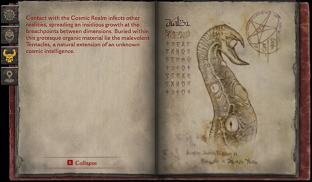 Contact with the Cosmic Realm infects other realities, spreading an insidious growth at the breachpoints between dimensions. Buried within this grotesque organic material lie the malevolent Tentacles, a natural extension of an unknown cosmic intelligence.