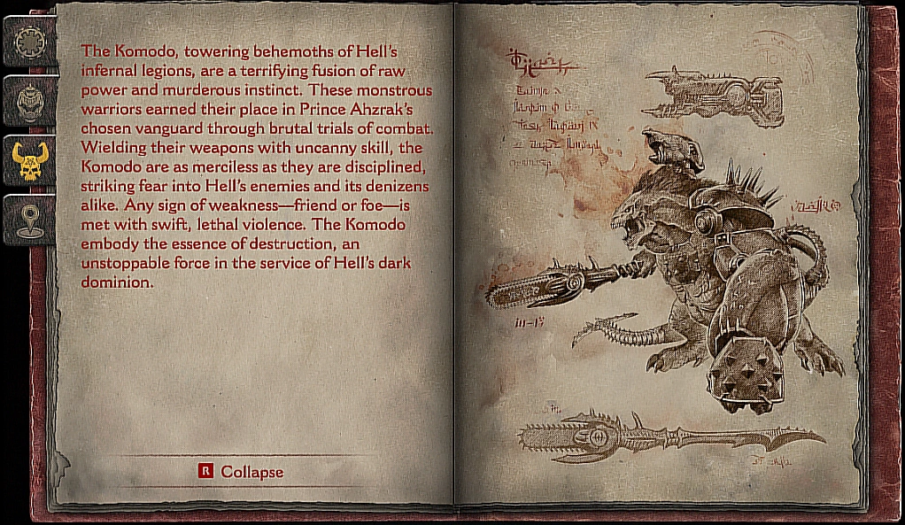 The Komodo, towering behemoths of Hell's infernal legions, are a terrifying of raw power and murderous instinct. These monstrous warriors earned their place in Prince Ahzrak's chosen vanguard through the brutal trials of combat. Wielding their weapons with uncanny skill, the Komodo are as merciless as they are disciplined, striking fear into Hell's enemies and its denizens alike. Any sign of weakness -- friend or foe -- is met with swift, lethal violence. The Komodo embody the essence of destruction, an unstoppable force in the service of Hell's dark dominion.