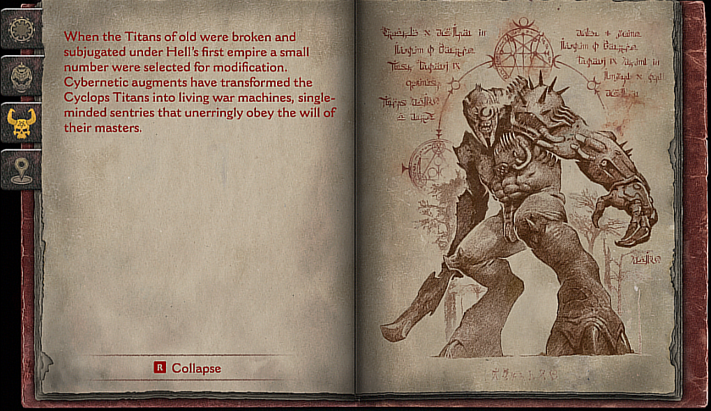 When the Titans of old were broken and subjugated under hell's first empire a small number were chosen for modification. Cybernetic augments have transformed the Cyclops Titans into living war machines, single-minded sentries that unerringly obey the will of their masters.