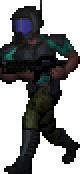 However, years later Hell tries once again to reach our universe in Doom 64 by using one of the old bases invaded by demons (it's never specified which, although there is a reference to 'planetary' twice which could indicate UAC Mars Base from Doom II, but if it was not meant to be taken literally could be reference to Phobos or Deimos), but now they are led by the Mother Demon. The Marine is recommissioned to fight again. In this version he looks almost identical to the Doom I and Doom II marines, except that his armor is black instead of being of the same green as his clothes, his boots and helmet are black too instead of grayish beige, and his visor is blue rather than gray. Also, his helmet features a radio antenna on the side in a way somewhat reminiscent of Boba Fett's helmet in The Empire Strikes Back. His face is never shown in Doom 64 since there is no status bar (though it may appear in the Soul Sphere graphic). It is unknown if he is the same marine, however, the game's background story text implies that he is, in fact, the same person from the original games, denoting him as "the only experienced survivor of the DOOM episode" and "the only Marine to endure the slaughter."