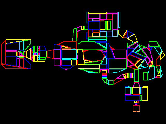 Viewed from the top down, all levels are actually two-dimensional, demonstrating one of the key limitations of the engine: it is not possible to have "rooms above rooms". This limitation, however, has a silver lining: a map mode can be easily displayed which represents the walls and the player's position, as shown schematically in the first image to the right (in contrast, the map mode of Doom's close contemporary Descent — which used an unfettered 3D engine [2] — was extremely hard to interpret).