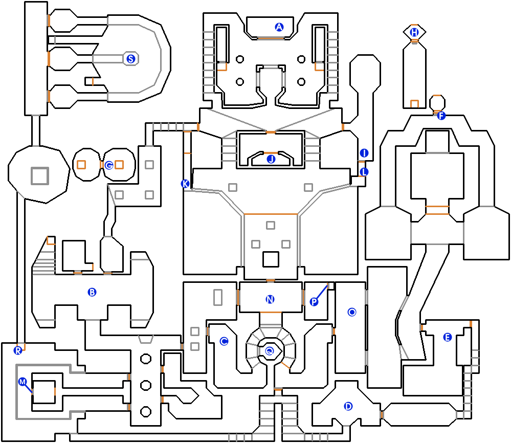 - Letters in italics refer to marked spots on the map. Sector numbers in boldface are secrets which count toward the end-of-level tally.