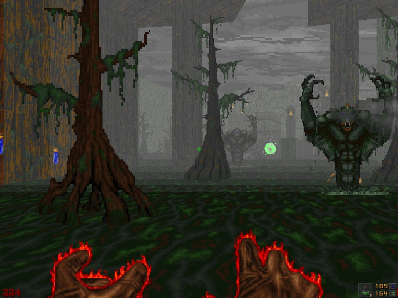 Firestorm is the Cleric's third weapon from Hexen. It is a spell which launches a streak of flame directly ahead of the player. If it comes into contact with a monster it will explode and spawn a small ring of flames that rotate around the point of impact, which will detonate upon contact with an obstacle or wall, heavily damaging the target and any other monsters within a short radius. Its icon is a spinning eight-pointed iron cross with a flame shooting upward. The spell uses four Green Mana per shot.