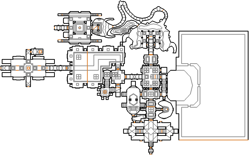 - Letters in italics refer to marked spots on the map. Sector numbers in boldface are secrets which count toward the end-of-level tally.
