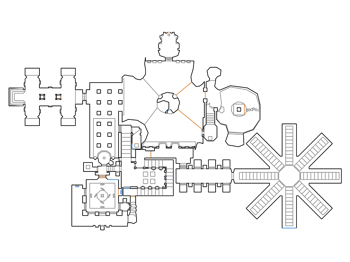 MAP22: Burnt Offerings is the twenty-second map of Doom 64. A pitch-black sky and hellfire dominating the horizon indicates just how deep in Hell the level is. The background music is the same music heard in Level 5, Tech Center. The stage consists of a large cathedral like place surrounded by a courtyard with a altar covered in candles, various areas infested with arachnotrons and also fighting large amounts of spectres and hell knights. Burnt offerings in the form of traps lie in wait throughout the area, eager to ensnare unsuspecting players.