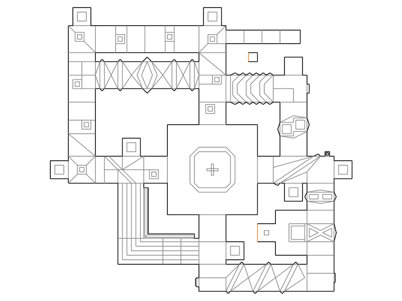 MAP25: Cat And Mouse is the first fun level in Doom 64. It is the first level that can not be accessed through normal play and must be accessed using the features menu acquired from beating MAP32: Hectic or with a specific password. The background music is the same heard in MAP02: The Terraformer and MAP16: Blood Keep. In Doom 64 TC, it is accessed from MAP01: Staging Area.