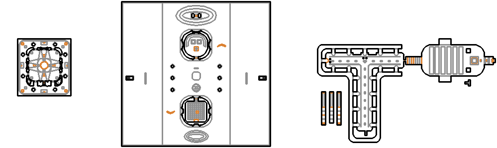 There are two hidden teleporters in the main central area, one in the northeast and one in the southwest - visible as "("-shapes on the map.