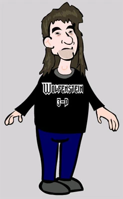 Tom Hall wears a Commander Keen helmet in this flash clip. In addition, he references the vorticon race as a dedicated target for pizza. John Carmack is a robot in this cartoon; and talks like The Terminator does. A sprite-ized photo of Adolf Hitler is shown behind a teleportation device that John Carmack tests his cat Mitzi on; and this is co-referenced with Wolfenstein 3D and Doom.
