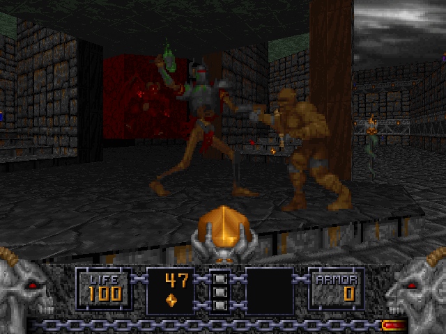Infighting does not just occur in Doom. Here, in Heretic, an Undead Warrior has managed to anger a Golem.