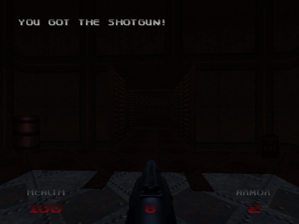 - The shotgun was the earliest weapon to appear in Doom, dating from the February 1993 pre-release alpha of the game (Doom 0.2). The shotgun model and animation were present, although the gun graphic had a muzzle brake. The alpha version of the player's in-vision display screens attributed it with 'DAM 30, RPS 20, MAX 99, RNG 50'.