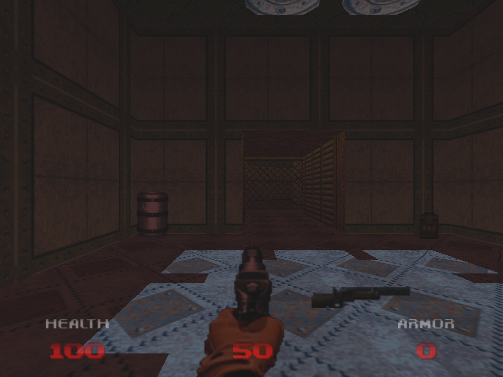 Doom 64's shotgun from first person view.