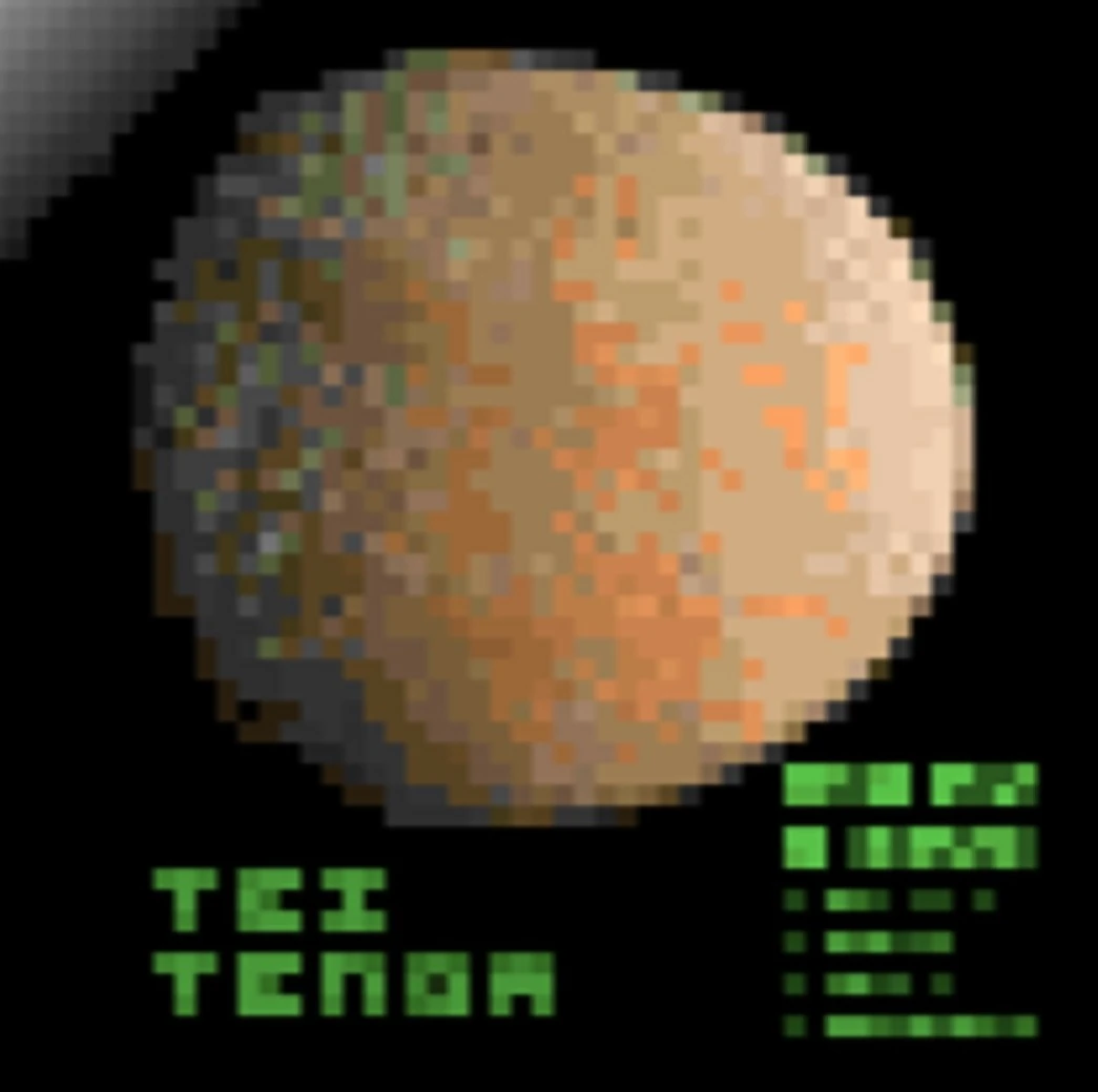 Although it is initially referred to as the giant moon Tei Tenga, it is called a planet in a few other instances. If the celestial body is a planet, it can itself have no moons of substantial size, as these would make tidal lock with the sun an impossibility. The earliest data files with any reference to the celestial body - simply stylized graphics giving the position of the anomalies - names the pictures MOONx0, where x is a letter from A to H.