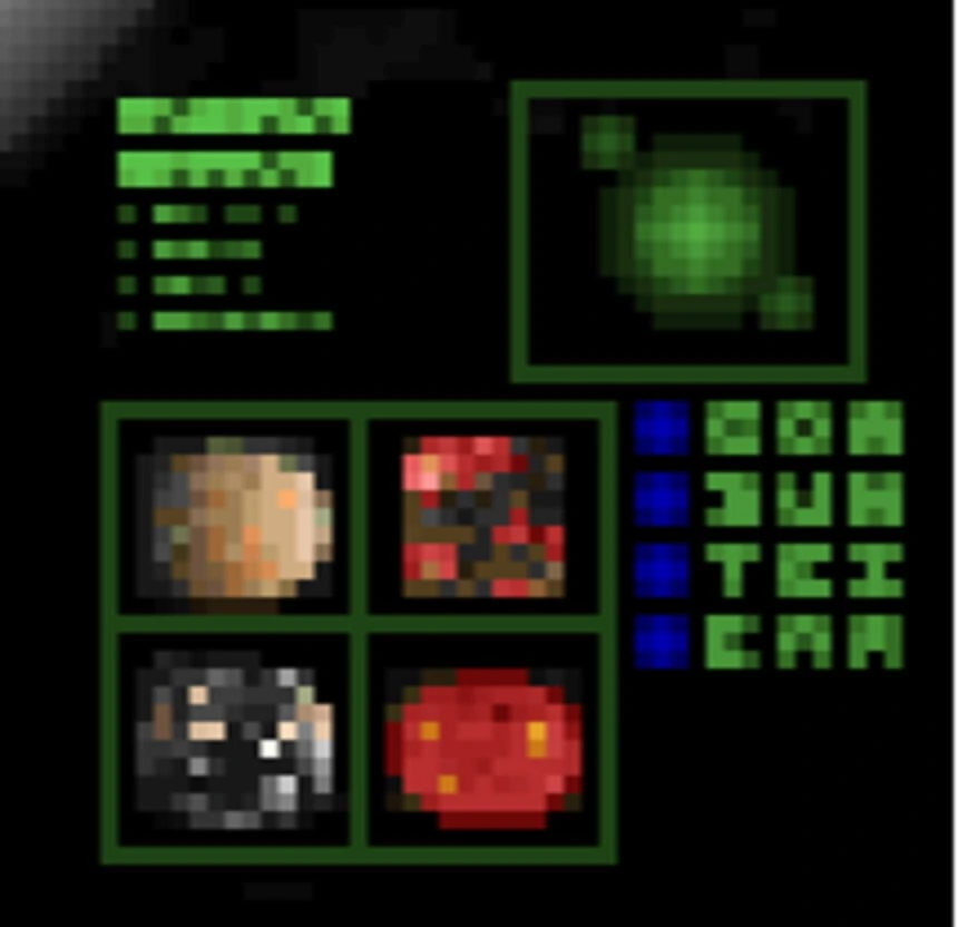 The computer screens in the game, as well as the sky textures, indicate Tei Tenga has a brownish red hue. From this, we can easily deduce Tei Tenga has a soil rich in oxides and iron. One sky texture hints that the Deserts covering the planet are so large and expansive, they could cover an entire view of a sky as being akin to that of a sandy cave.